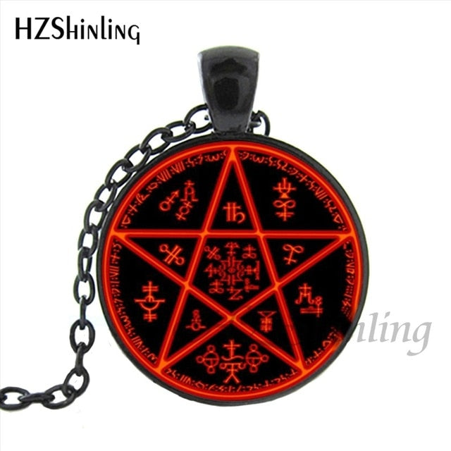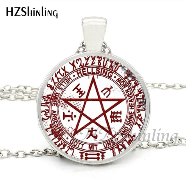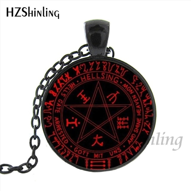 HZShinling HZ1-0045 Hellsing Alucard Pentagram Necklace Glass Cabochon Hellsing Pentagram Statement Pendant Necklaces Wholesale