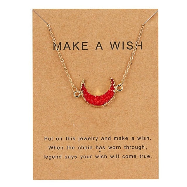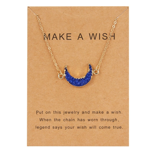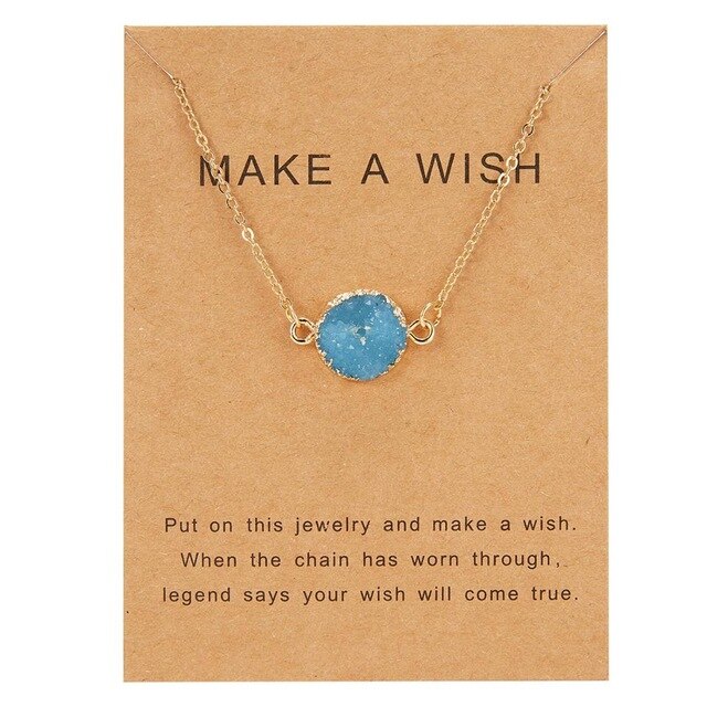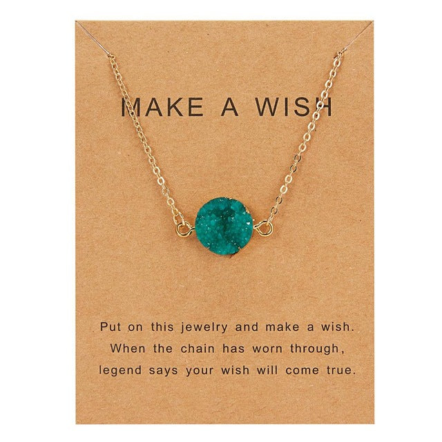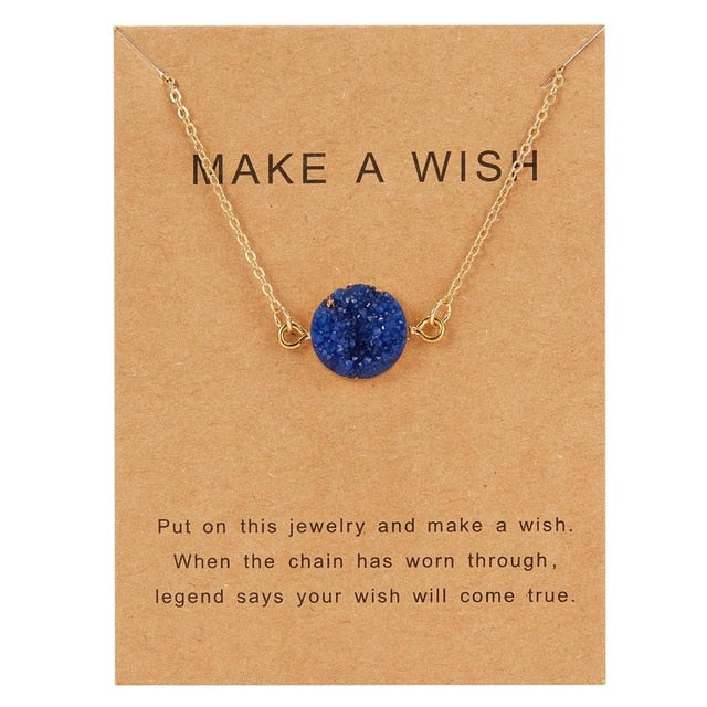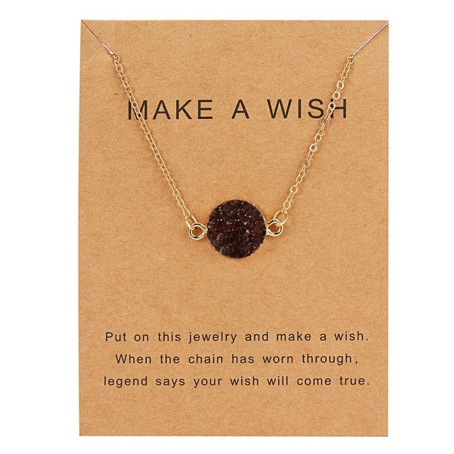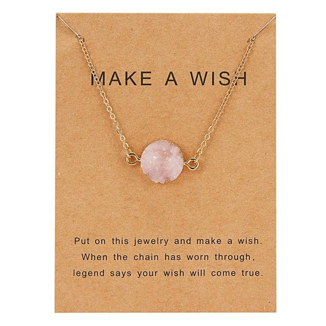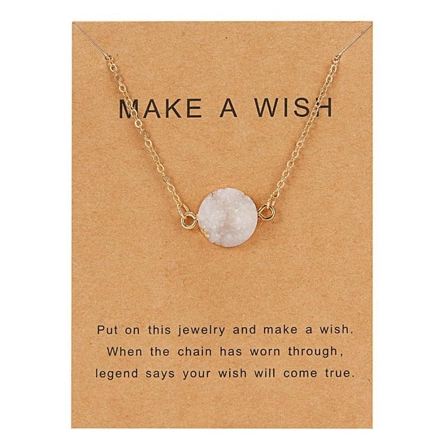 Rinhoo Wish Card Jewelry Gift Round Pendant Necklace Natural Stone Quartz Druzy Stone Link Chain Necklace for Women Collars